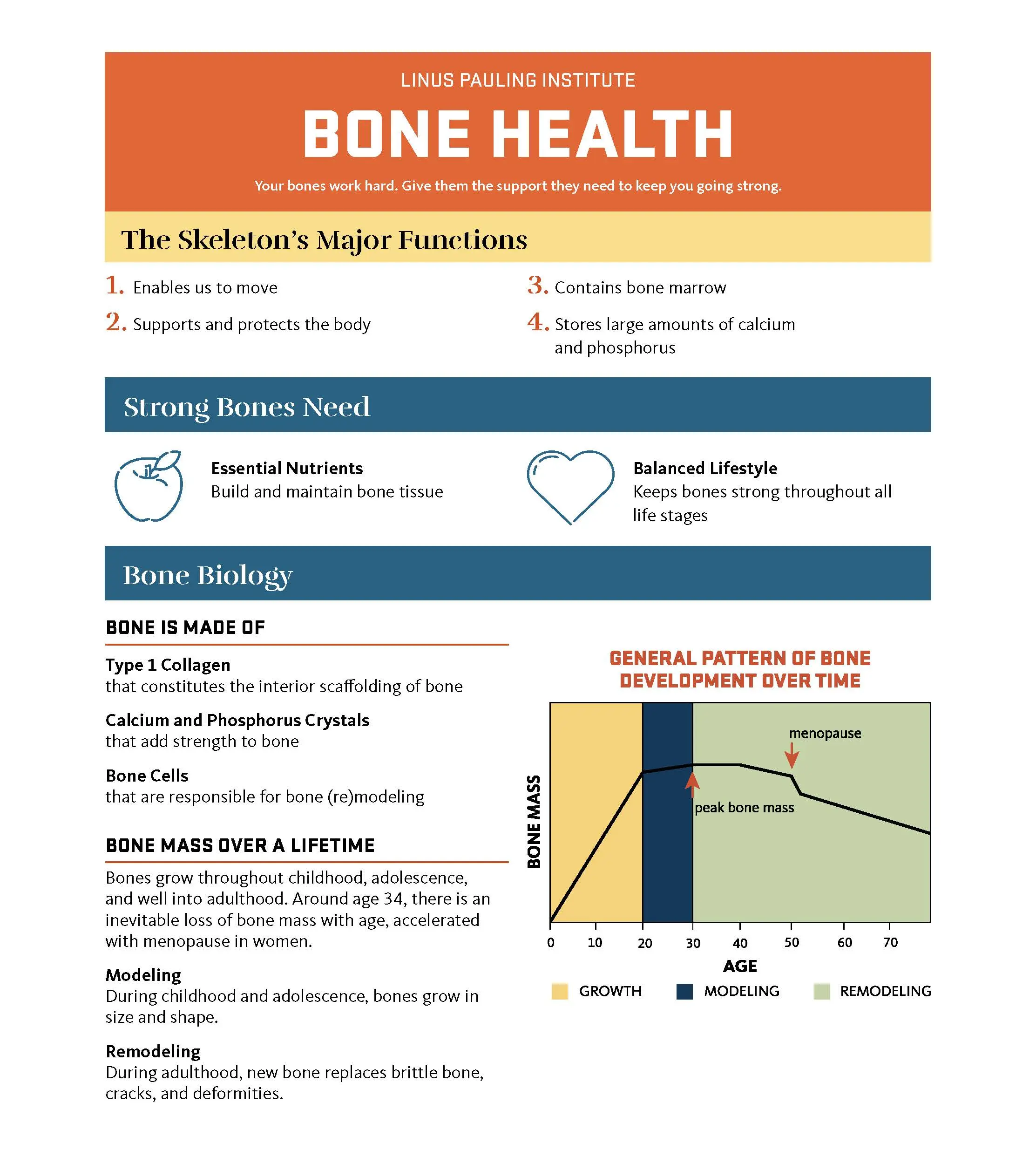 Our bony skeleton provides support, protection, and mobility for the body and constitutes a major storage site for calcium and phosphorus. Bone health is intrinsically linked to calcium (and phosphorus) metabolism. Calcium concentrations in the blood must be maintained within a very narrow concentration range to preserve normal physiological functions (e.g., muscle contraction, nerve impulse conduction, constriction and relaxation of blood vessels). Because these functions are essential, the body will use calcium stored in bone to maintain normal blood calcium concentrations when calcium intake is inadequate. However, this is done at the expense of our skeleton.