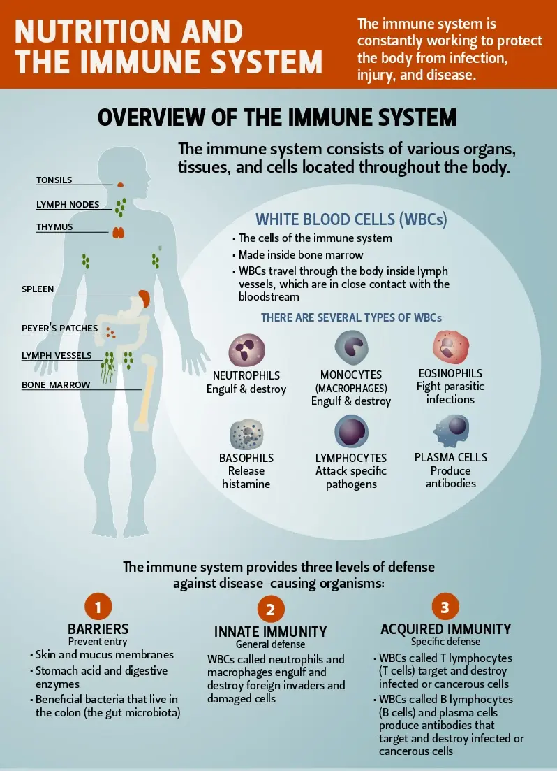The immune system protects the body against infection and disease. It is a complex system of organs, tissues, and cells located throughout the body.