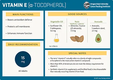 114. Gao X, Wilde PE, Lichtenstein AH, Bermudez OI, Tucker KL. The maximal amount of dietary alpha-tocopherol intake in U.S. adults (NHANES 2001-2002). J Nutr. 2006;136(4):1021-1026.  (PubMed)
